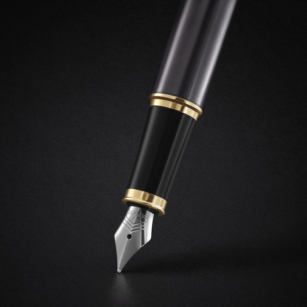 Plnicí pero Parker IM Core Grey GT je součástí kolekce Core Grey Finish inspirované ikonickou kolekcí Parker Pioneers. Tato kolekce se pyšní povrchovým lakováním v elegantní šedé barvě, která byla vyvinuta speciálně pro tuto kolekci. Tělo a víčko pera je z nerezové oceli v ikonické šedé barvě v kombinaci s klipem a doplňky pozlacenými pomocí techniky PVD. Úchopová část z černého lesklého plastu. Hrot z leštěné nerezové oceli. Nasazovací víčko. Dodáváno s modrou bombičkou. Baleno v dárkové krabičce.