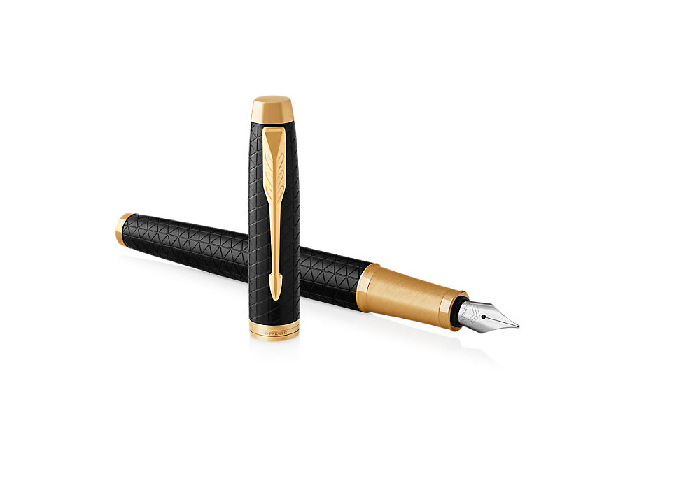 Pera Parker IM Premium s ikonickými vzory a efektivními povrchy vynikají jako profesionální, sofistikované nástroje pro jemné psaní. Udělejte trvalý první dojem s pery Parker IM Premium, které se vyznačují výraznýmy siluetami. Tělo a víčko z mosazi se zdobnou rytinou vyvedenou pomocí laseru, povrch ošetřen pískováním. V kombinaci s doplňky pokovenými zlatem, s leštěnou úpravou. Nasazovací víčko. Hrot z nerezové oceli zdobený jemnou rytinou. Standardní nabídka zahrnuje slabé a střední hroty. Dvoukanálkový systém zásobování hrotu inkoustem. Přizpůsobeno výhradně k používání inkoustových bombiček nebo konvertoru (není součástí balení). Dodáváno s modrou bombičkou. Baleno v dárkové krabičce.