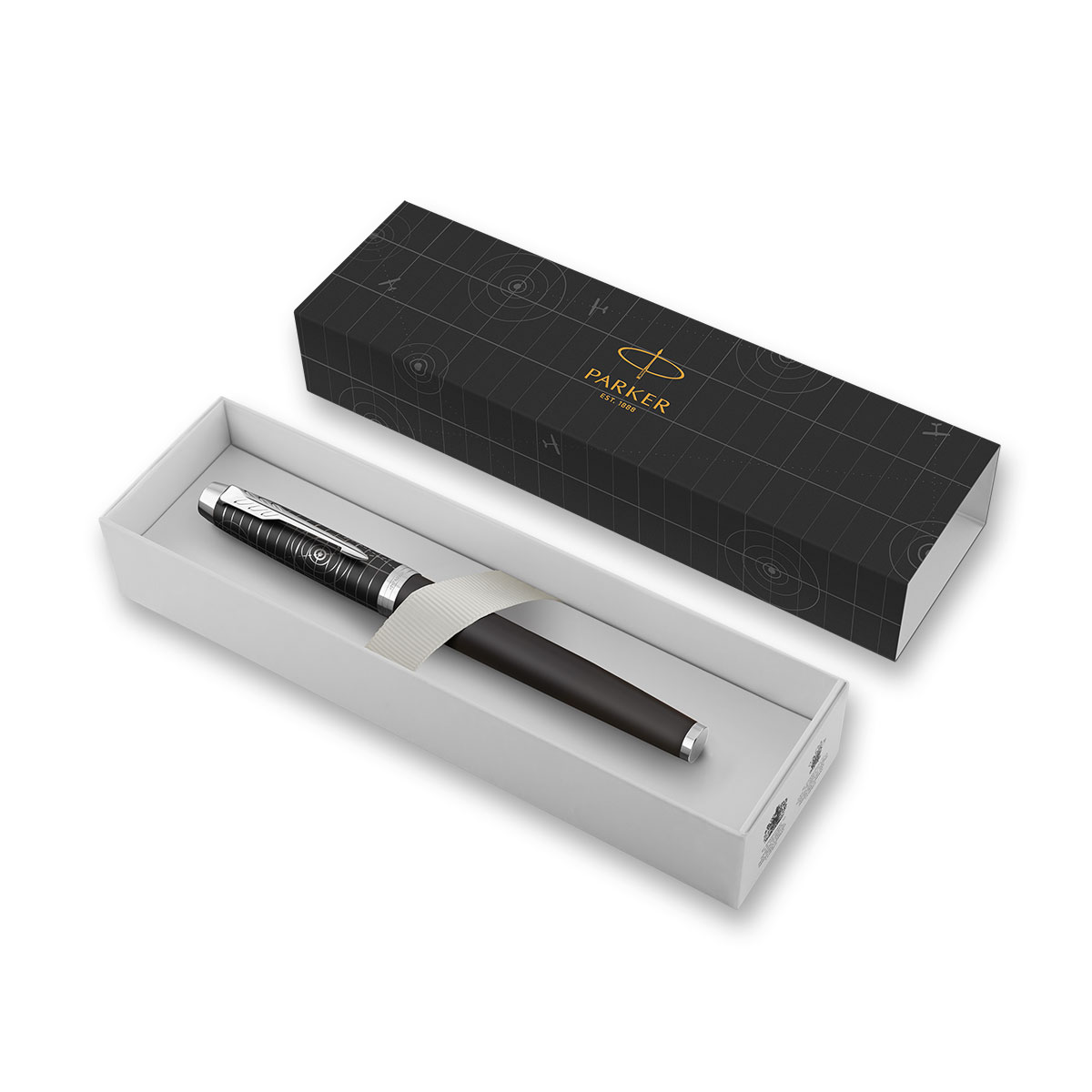 Kolekce Legacy of Flight vzdává hold odvážnému duchu leteckého dobrodružství z počátku 20. století. Duchu, který měl hluboký dopad na rodinu Parkerových a povzbuzoval je a inspiroval k podnikatelským cestám do nových území. Matně černé lakované tělo z nerezové oceli, kartáčovaná nerezová ocel na úchopu a chromové povrchové úpravy moderní siluety Parker IM poskytují mladým profesionálům spolehlivý a sebevědomý zážitek z psaní. Leštěný hrot z nerezové oceli dokonale doplňuje unikátní laserem gravírovaný letecký motiv na matně černém nasazovacím víčku a zdůrazňuje odborné znalosti a řemeslné zpracování Parkeru v každém detailu. Parker IM Legacy of Flight je pro všechny kdo jsou otevření novým dobrodružstvím umožňující vytyčit si vlastní cestu. Dvoukanálkový systém zásobování hrotu inkoustem. Přizpůsobeno výhradně k používání inkoustových bombiček nebo konvertoru (není součástí balení). Dodáváno s modrou bombičkou. Baleno ve speciální dárkové krabičce s vyobrazenou leteckou trasou.