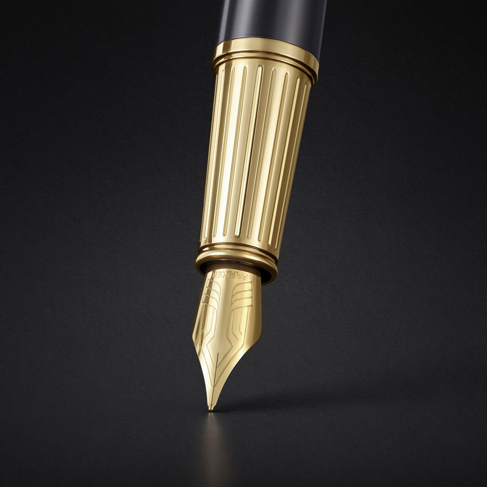 Plnicí pero Parker Ingenuity Core Grey GT je součástí kolekce Core Grey Finish inspirované ikonickou kolekcí Parker Pioneers. Tato kolekce se pyšní povrchovým lakováním v elegantní šedé barvě, která byla vyvinuta speciálně pro tuto kolekci. Tělo a víčko pera je z mosazi v ikonické šedé barvě v kombinaci s klipem a doplňky z nerezové oceli pozlacenými pomocí techniky PVD. Mosazná úchopová část a hrot z nerezové oceli pozlacený pomocí techniky PVD. Úchopová část zdobená pravidelnými vertikálními rytinami a hrot se zdobnou rytinou. Nasazovací víčko. Balení obsahuje 2 bombičky ( modrá + černá ). Baleno v dárkovém boxu. Vyrobeno ve Francii.