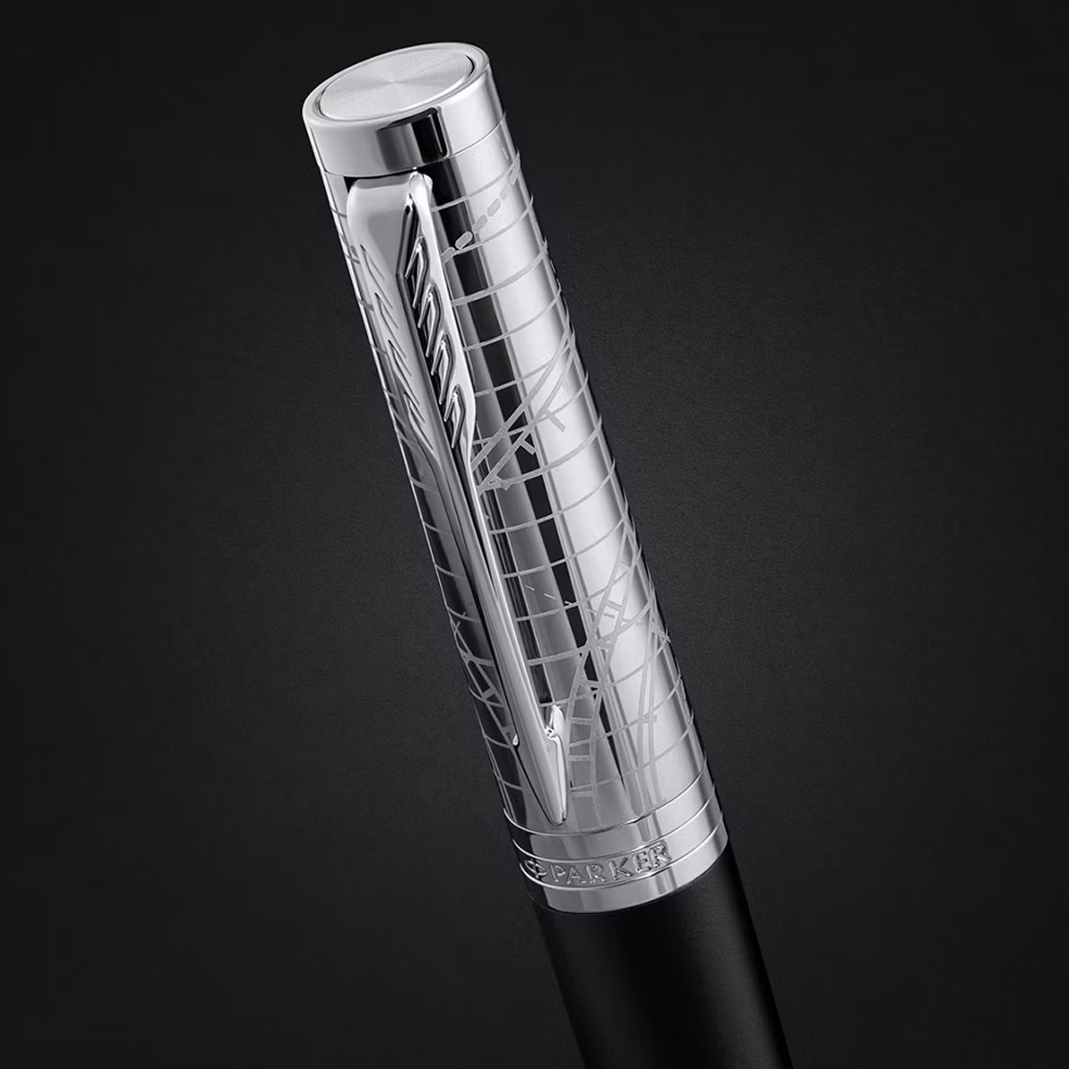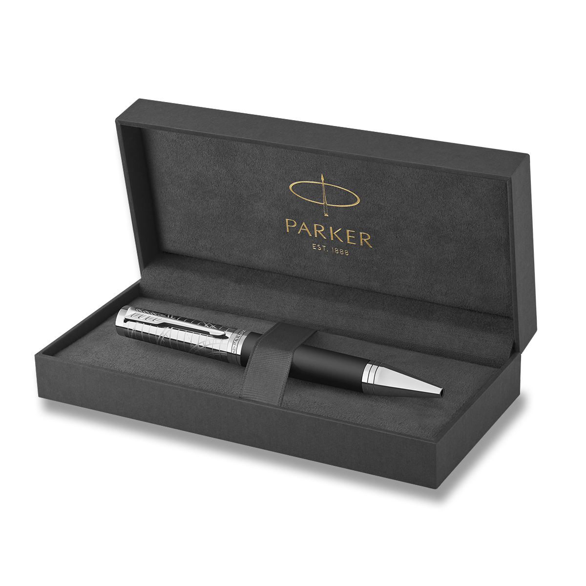 Kolekce Legacy of Flight vzdává hold odvážnému duchu leteckého dobrodružství z počátku 20. století. Duchu, který měl hluboký vliv na rodinu Parkerů a povzbuzoval je a inspiroval k podnikatelským cestám do nových území. Větší rozměry a moderní design pera Ingenuity v kombinaci s matně černým lakovaným tělem a chromovanou částí a ozdobnými prvky z něj činí přirozenou volbu pro sebevědomé profesionály. Toto pero je dodáváno v elegantní dárkové krabičce Parker s vnějším designem inspirovaným trajektorií letu a vnitřkem s texturou podobnou semiši, vytváří skutečný pocit luxusu. Tělo z nerezové oceli s povrchovou úpravou matného černého laku. Víčko má unikátní stříbrný vzor s leteckou tématikou vyrytý laserem na leštěném ocelovém podkladu pro hladký pocit. Otočný mechanismus. Dodáváno s černou náplní. Baleno v dárkovém boxu s vyobrazenou leteckou trasou. Vyrobeno ve Francii.