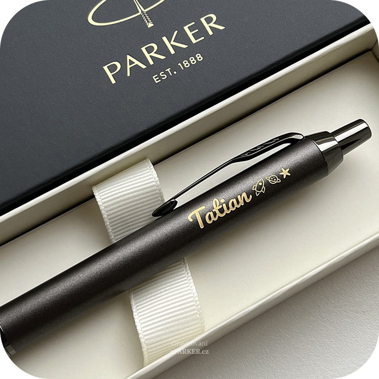 Na většinu per z nabídky Parker Vám můžeme zhotovit jakýkoliv grafický motiv, logo, text nebo iniciály.
